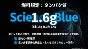 • 食うだけでカロリー消費: タンパク質は消化吸収で消費するカロリー(食事誘発性熱産生)が最も高い。食うだけで痩せやすくなるボーナス付きだ。
